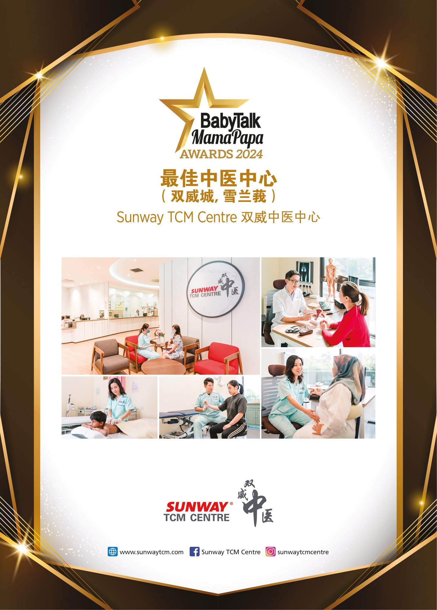 Sunway TCM Centre is the BabyTalk MamaPapa Readers’ Choice Awards 2024 Winner for TCM Centre (Bandar Sunway, Selangor).