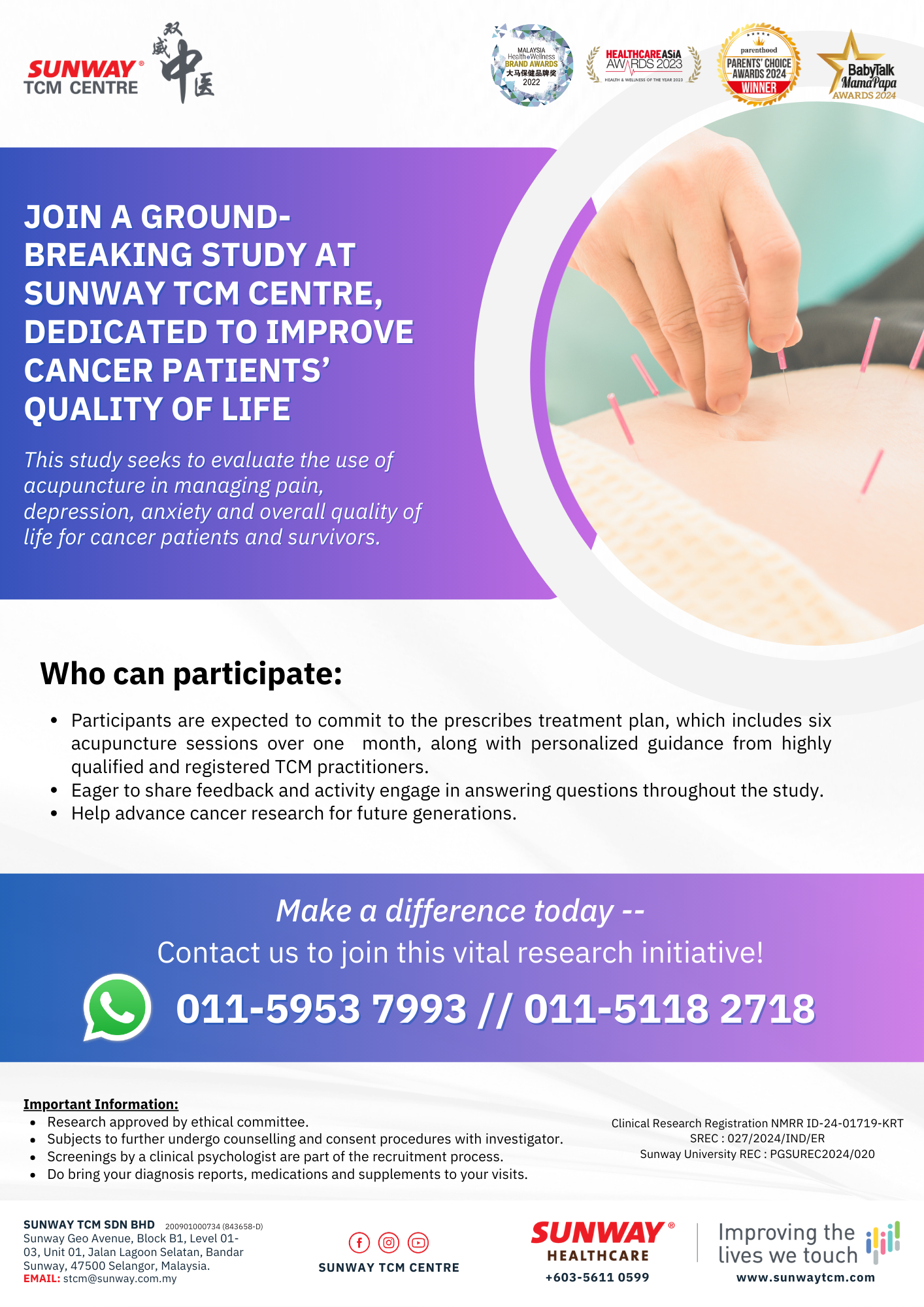 #CancerResearch #AcupunctureHealing #QualityOfLife #SunwayTCMCentre #TCM #SupportCancerPatients